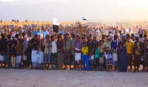 بقيادة محافظ الحديدة.. حشود غفيرة تصل المخا في تظاهرة شعبية تضامناً مع السعودية