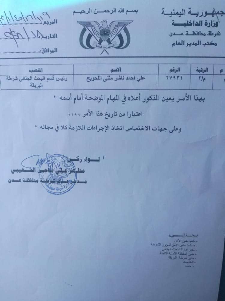 تعيين رئيس للبحث الجنائي في شرطة البريقة