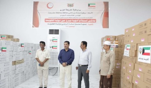 الكويت تتبرع بأدوية لمكتب الصحة في سيئون