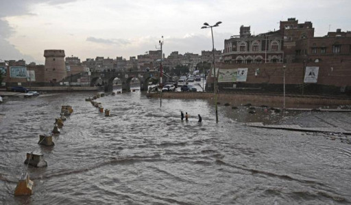 رصد طفل يلهو بمجرى الموت في تعز