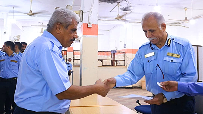 ودعا العميد الشاووش جميع الضباط والأفراد إلى مواصلة الانضباط والالتزام بالدوام الرسمي والزي العسكري، وبذل مزيد من الجهد في إنجاز معاملات المواطنين أولاً بأول، مشددًا على أهمية التحلي بحسن التعامل والأخلاق الرفيعة، واستقبال المواطنين بروح إيجابية تعكس صورة مشرّفة عن منتسبي الهجرة والجوازات بعدن.
